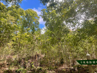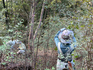 創造の森の一番奥にあるガンピの林では、種から育てた約500本のガンピが育っています。今後その生育の様子をモニタリングしていくために、今日の観察会で10m×10mの調査区を作りました。